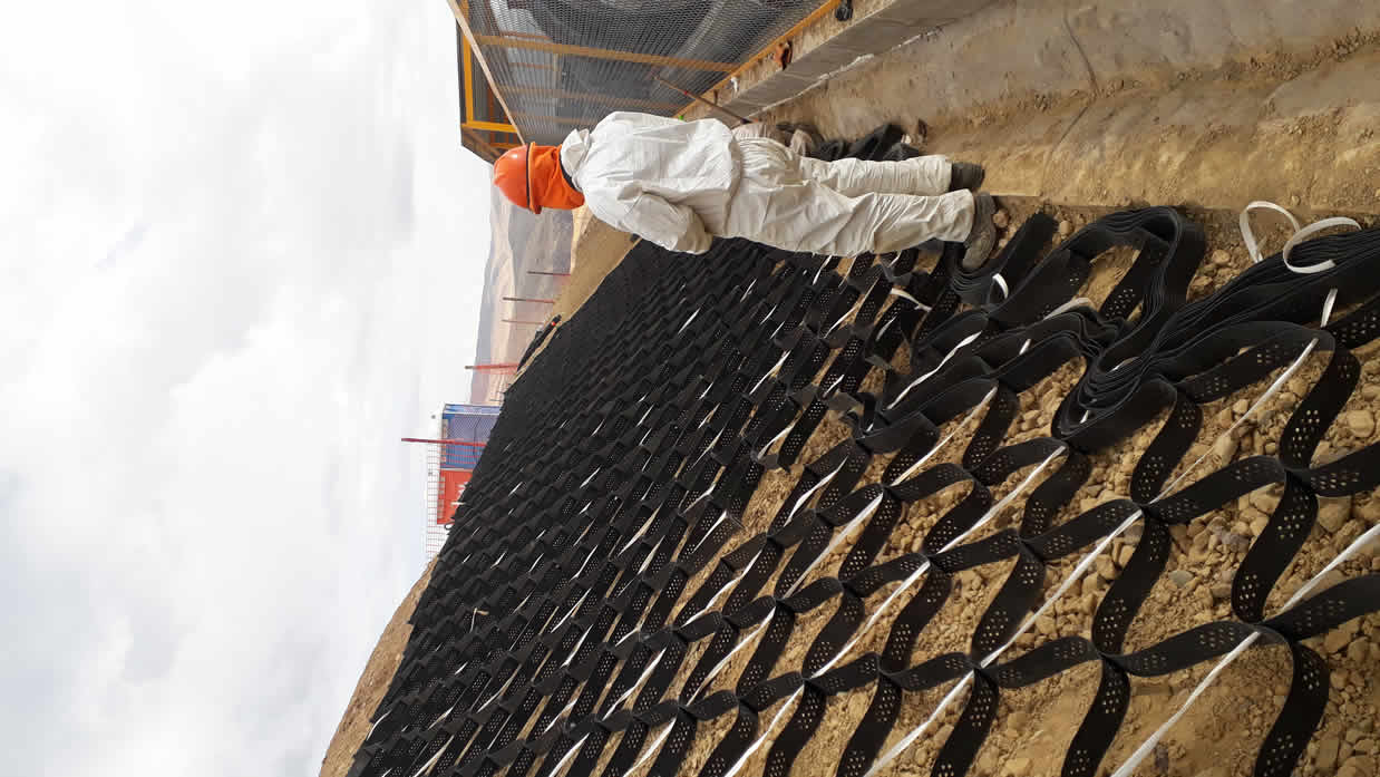 Proteccion contra deslizamiento de rocas con biomantas.